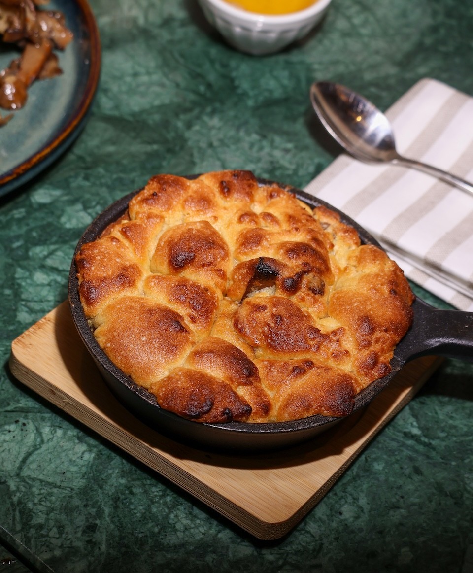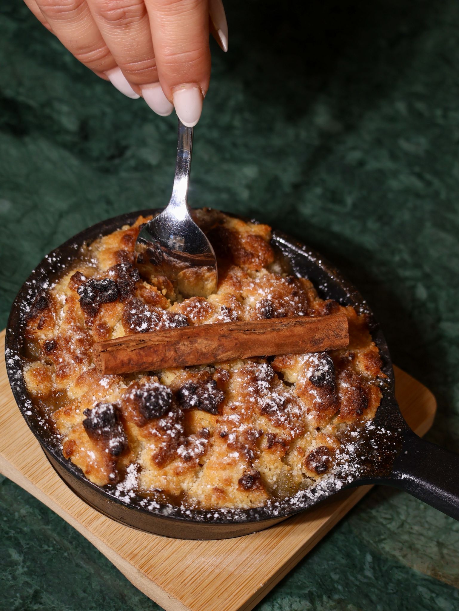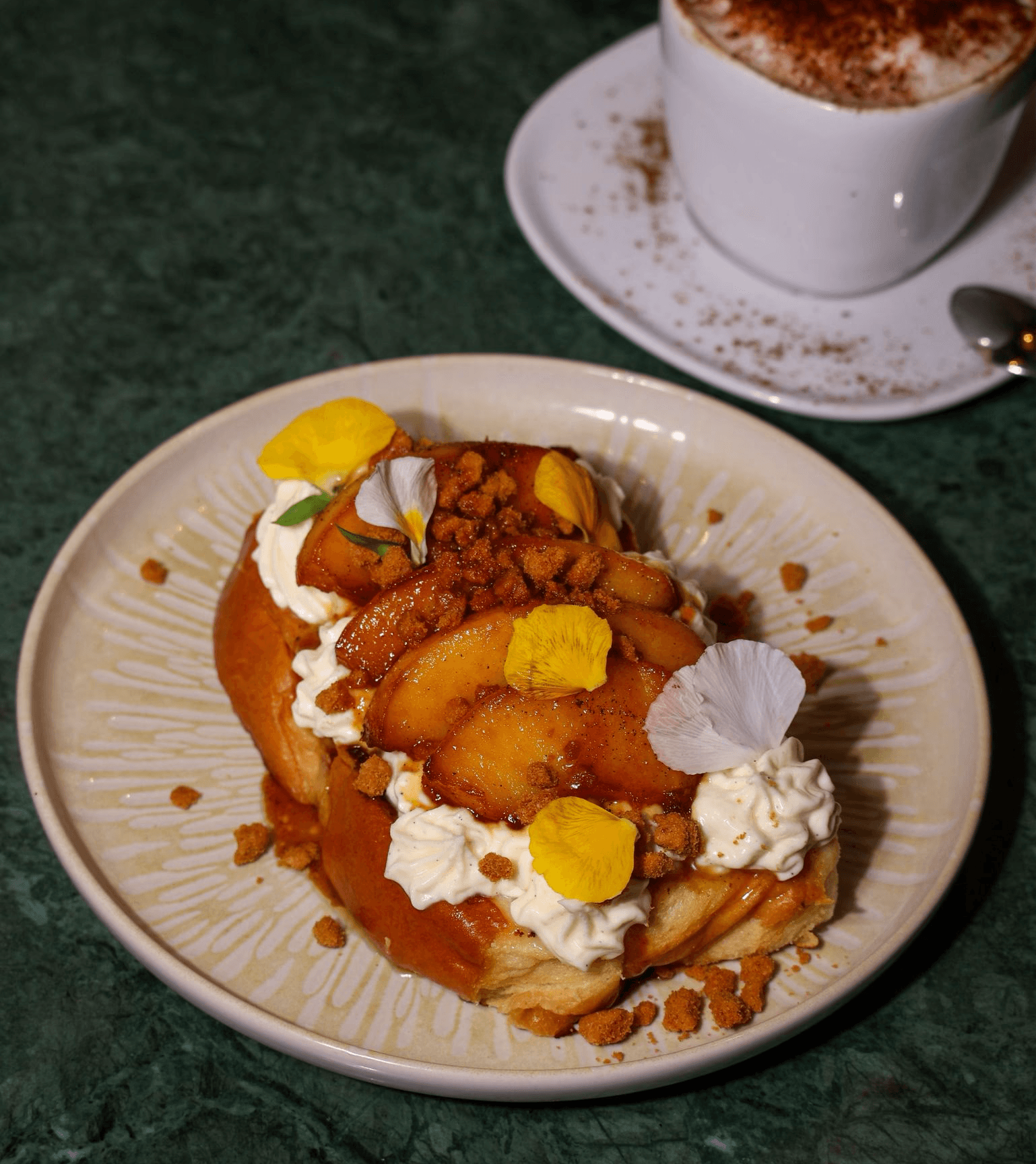 Brioche moelleuse garnie de pommes fondantes rôties à la cannelle, chantilly vanillée et crumble de spéculos. Un mix parfait entre douceur et croquant.