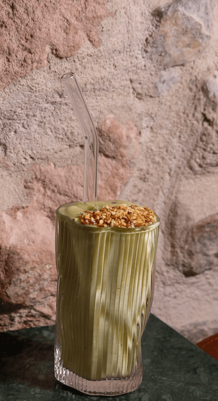 Crème de Pistache onctueuse mêlée à un nuage de lait chaud parsemé de poudre de Pistache pour une finale subtilement gourmande. À déguster chaud ou froid ( Lait végétal +1 ).