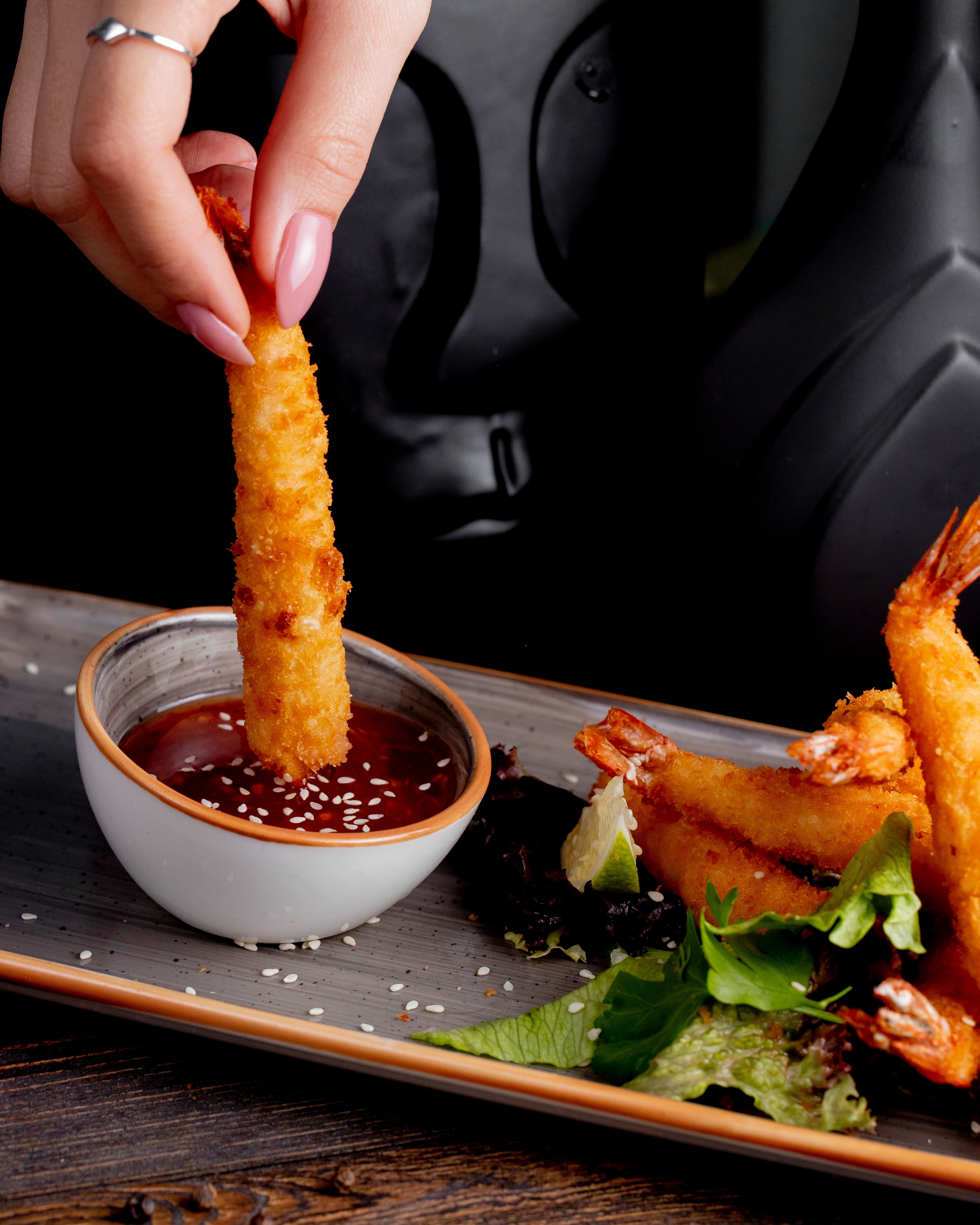 Crevettes dorées ultra croustillantes, plongées dans une sauce asiatique sucrée-épicée. Addictif dès la première bouchée.
