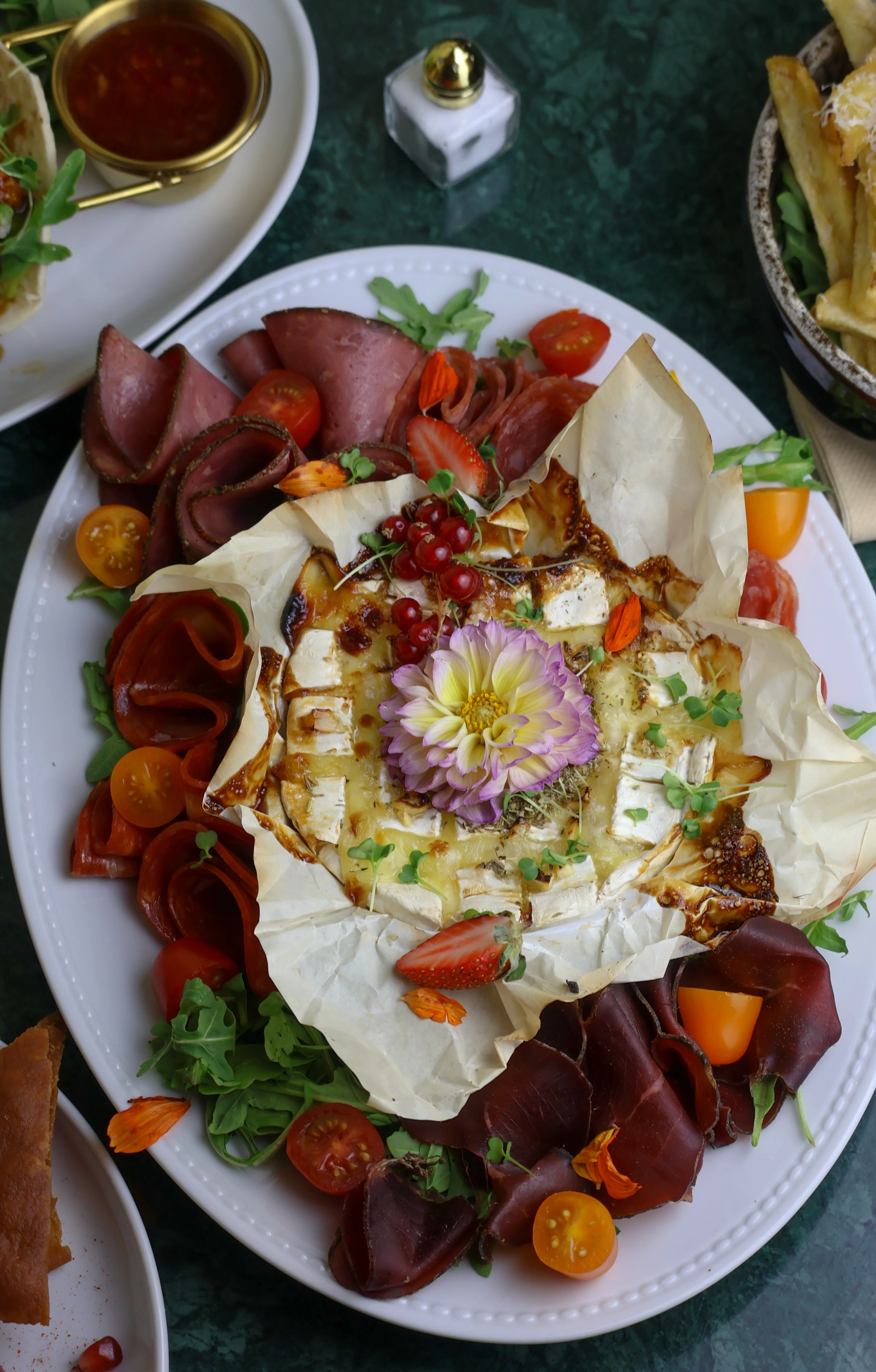 Fondant à cœur, parfumé au miel et au thym frais, entouré de charcuteries fines et fruits frais. Un plaisir généreux et raffiné à partager.